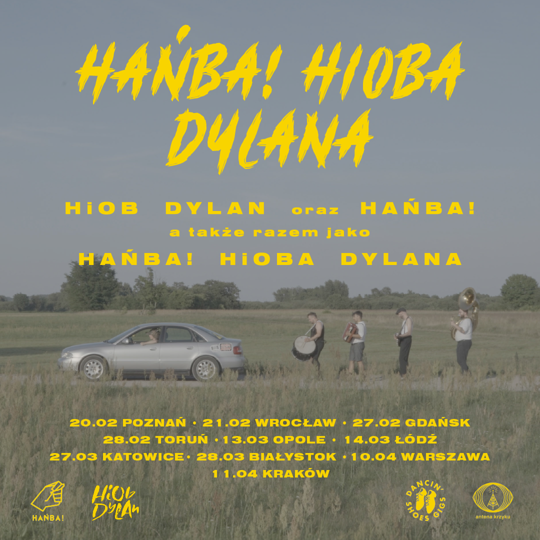 Na pierwszy rzut ucha Hioba Dylana z Hańbą! łączy jedynie niepokojące zamiłowanie do banjo. Tymczasem wyrośliśmy na tych samych drożdżach prowincjonalnych miast i wiosek, z których wywędrowaliśmy do wielkiego świata Warszawy i Krakowa. Mijając się tam i tu w końcu w kwietniu 2022 roku po raz pierwszy wspólnie wykonaliśmy Polskę B. Tak oto narodziła się Hańba! Hioba Dylana i album “Za kim idziesz”, który w pierwszych tygodniach 2026 roku wyda Antena Krzyku.