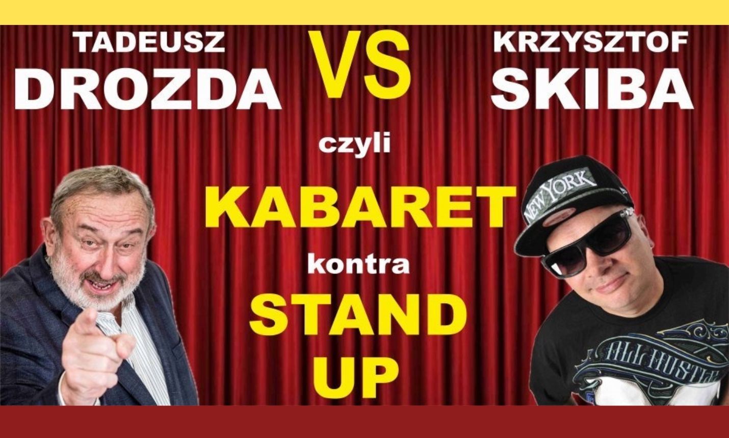 Widowisko komediowe "Kabaret kontra Stand-Up", czyli legenda kabaretu Tadeusz Drozda (lider kabaretu Elita, autor programów telewizyjnych "Śmiechu Warte", "Herbatka u Tadka" i "Dyżurny Satyryk Kraju") kontra stand-up, czyli Krzysztof Skiba (satyryk, autor tekstów zespołu Big Cyc, programy telewizyjne "Lalamido", "Uwaga Hotel", "Podróże z Żartem"). W tym trwającym dwie godziny spektaklu komediowym, widz będzie miał szanse być świadkiem konfrontacji scenicznej dwóch stylów komediowych. Pyszna zabawa, pełna żartów, aktualnych komentarzy i monologów komediowych, które rozbawią nawet najbardziej zatwardziałych ponuraków. Inteligentny humor dwóch wielkich osobowości polskiej estrady.