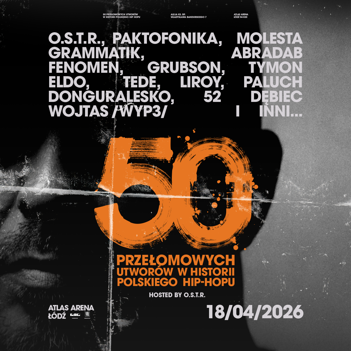 Wieczór poprowadzi O.S.T.R. — jeden z najważniejszych i najbardziej wpływowych artystów w historii polskiego rapu. Program wydarzenia obejmuje 50 utworów, które w różnych momentach przesuwały granice hip-hopu w Polsce — zarówno pod względem brzmienia, jak i treści czy produkcji. To kompozycje, które inspirowały kolejne pokolenia artystów i słuchaczy oraz wyznaczały nowe standardy dla całej sceny.